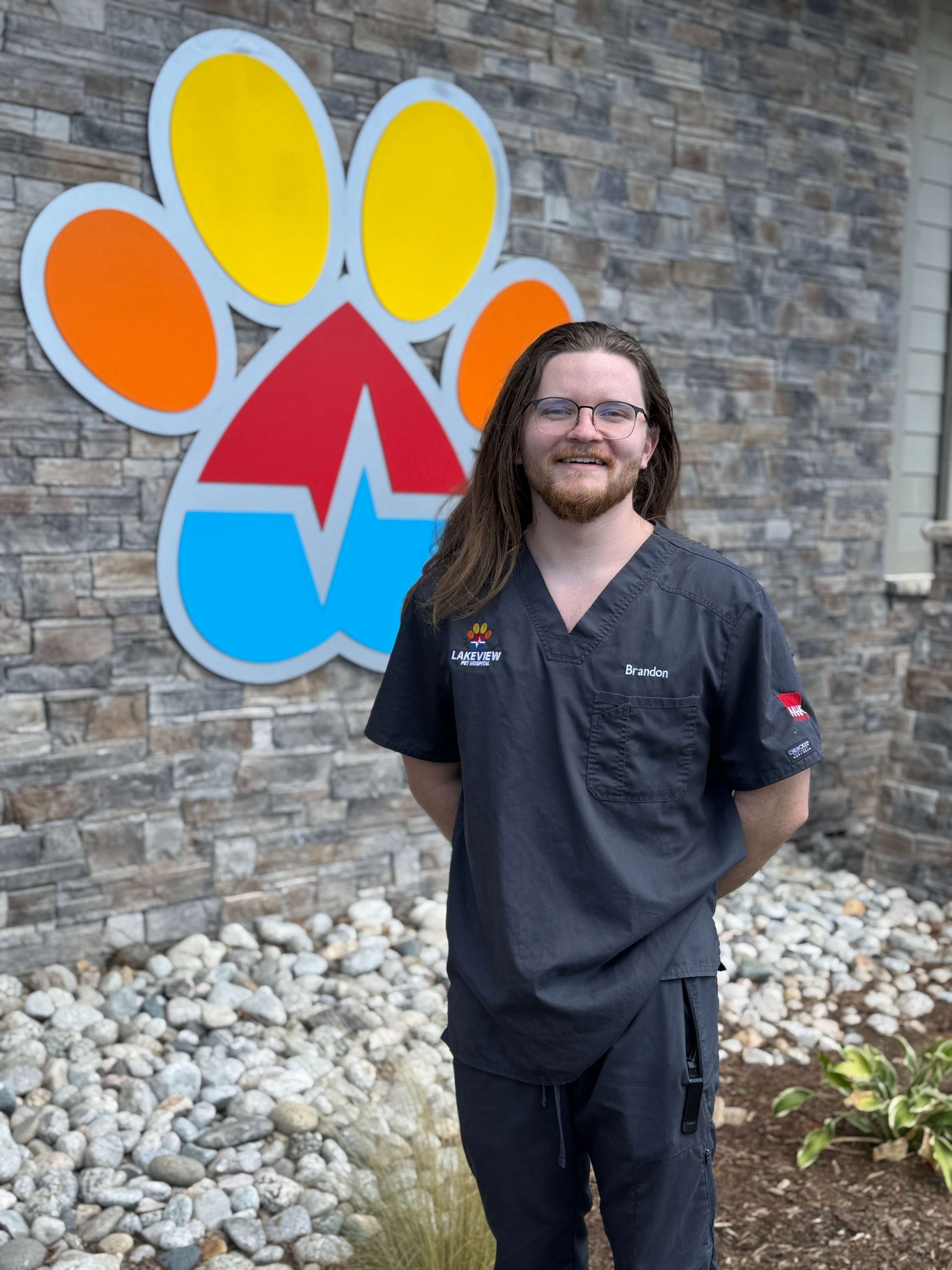 Brandon grew up as a “military brat” moving around the country but calls Oklahoma home. After high school Brandon’s Mom encouraged studying engineering but he discovered his passion and love for caring for animals, which led him to graduate Oklahoma State University with a Bachelor of Science in Animal Science in 2024. He is excited to further his veterinary education and currently applying to Vet Schools. Brandon loves the relationships with clients and patients and is passionate about client education to help the pet receive the best care possible. He shares his home with his wife, Valeria, and dogs Celeste, Melao and new puppy Benito, who chose Brandon right before the 2026 snow storm. Brandon enjoys going to the gym, coaching soccer and spending time with family.