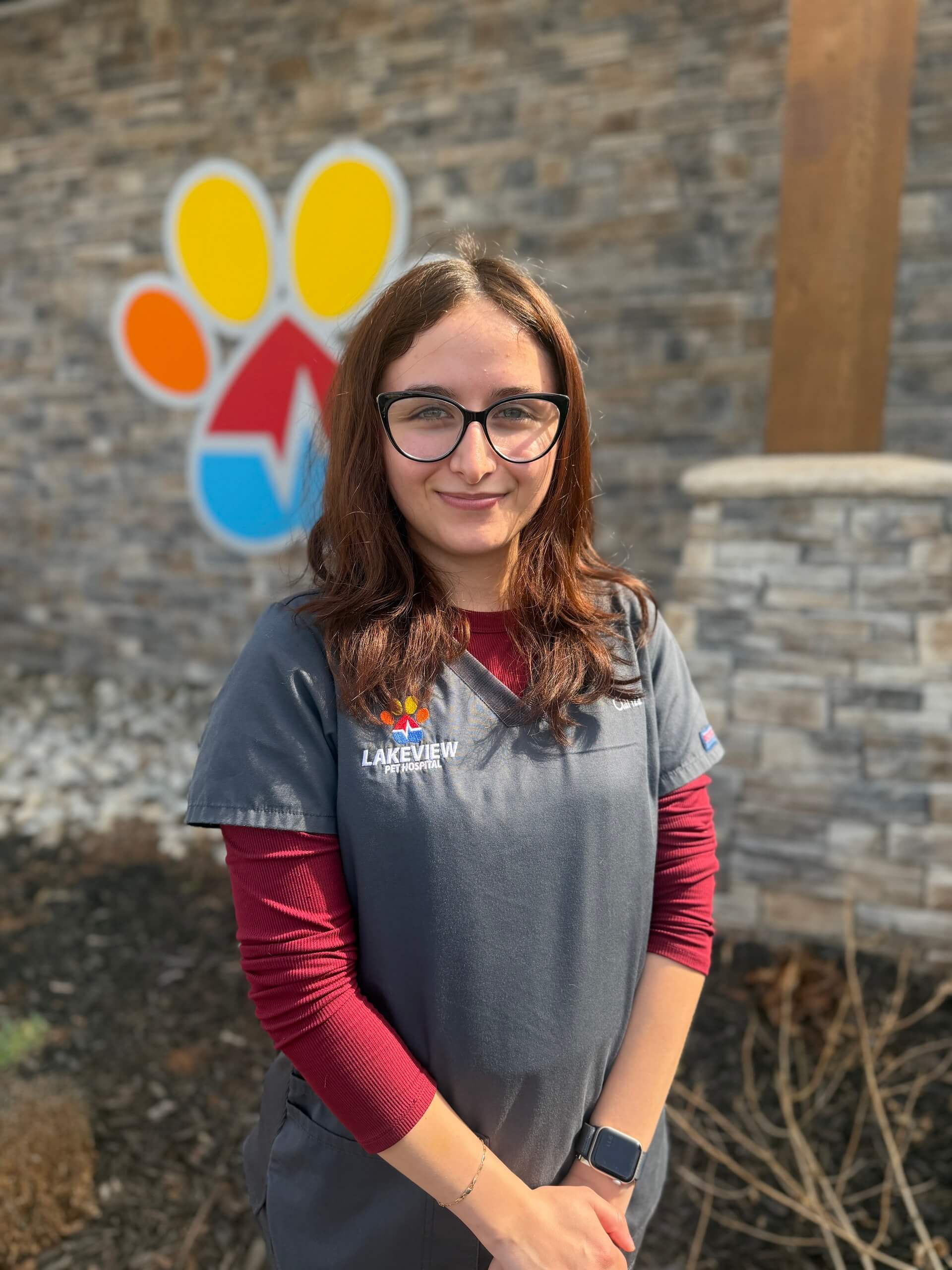 Katelyn grew up in Yukon and had experience in customer service before joining our Lakeview Team. She was actually a client first with our Lakeview Family, and her own experience with her pet inspired her to want to be a compassionate advocate for others. She is pursuing a Registered Veterinary Technician degree through Penn Foster and hopes to continue helping pets and people. Katelyn shares her home with her husband, Travis, and two dogs, Luna and Theo. She likes spending time with friends & family, reading and outdoor activities.